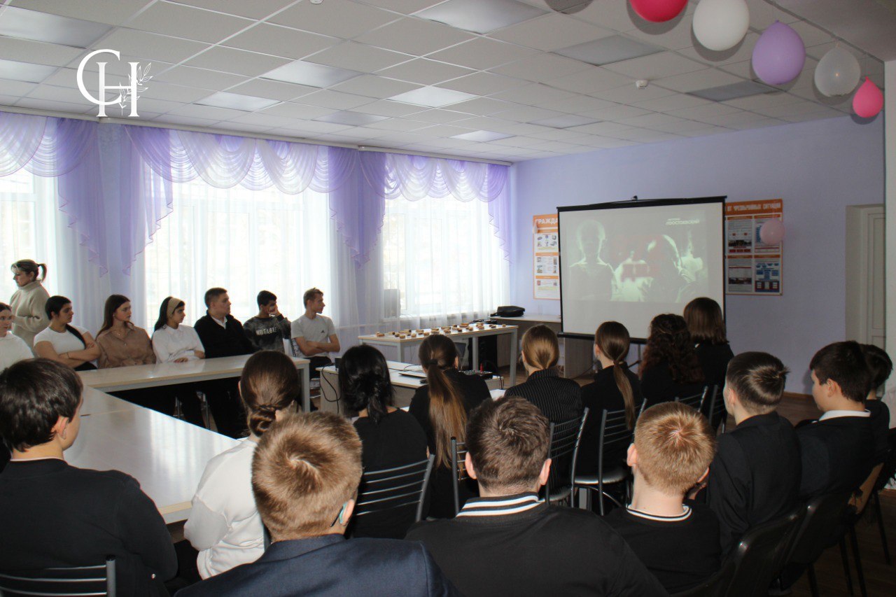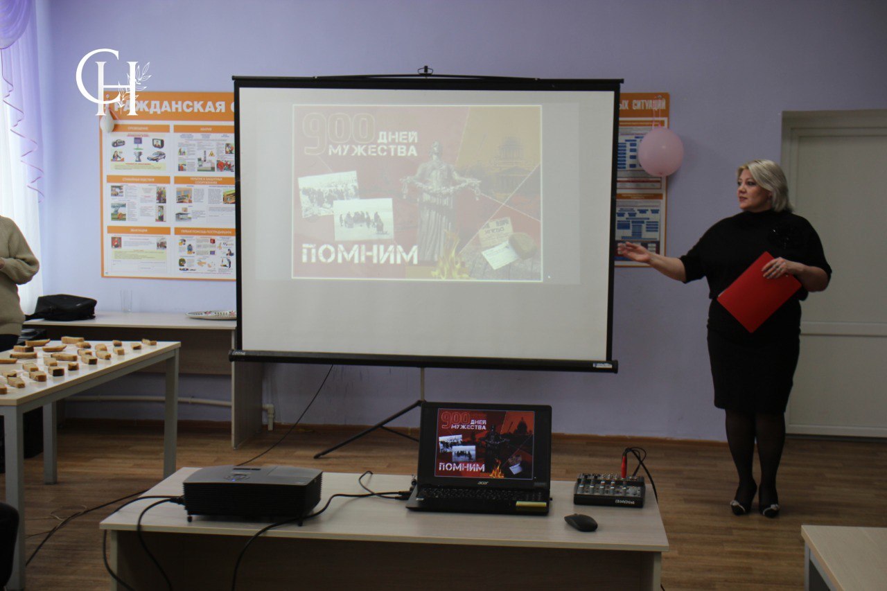 В рамках беседы она предложила ребятам посмотреть документальный фильм с архивными кадрами о блокадных днях. Из него школьники узнали важные факты не только о страшных событиях, но и героизме жителей, которые не только не растеряли человеческий облик, но и умудрялись проводить и бывать на концертах и спектаклях, спортивных состязаниях.
