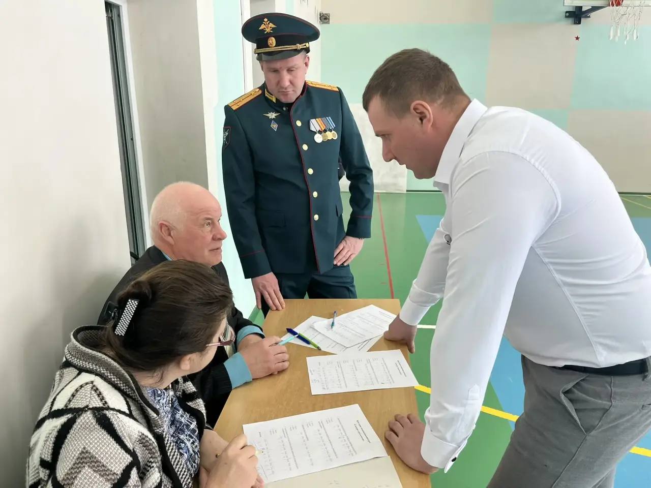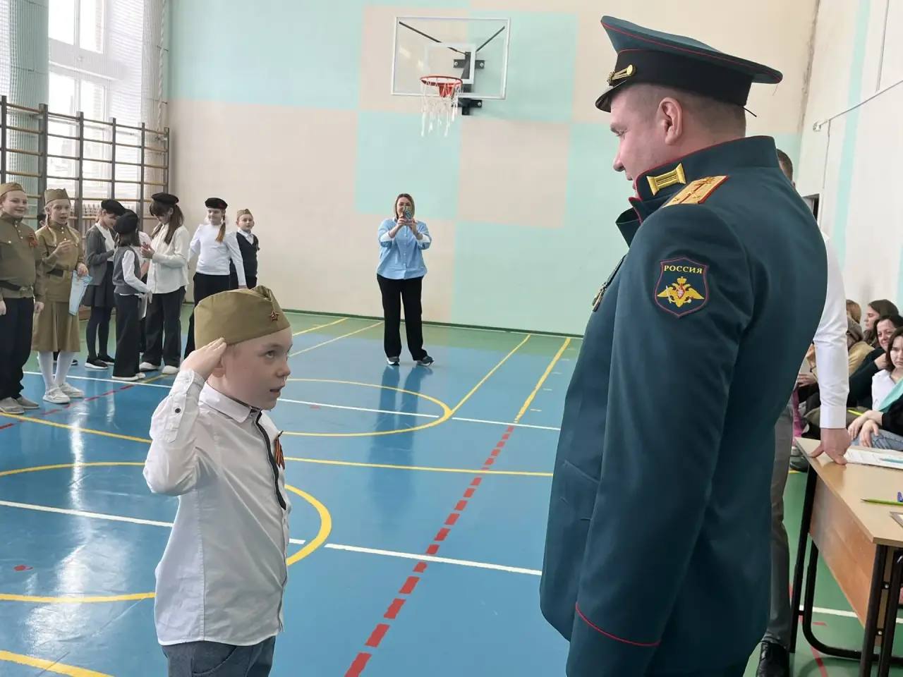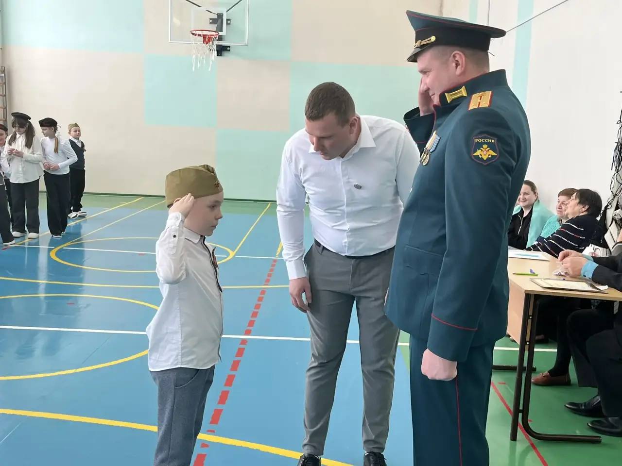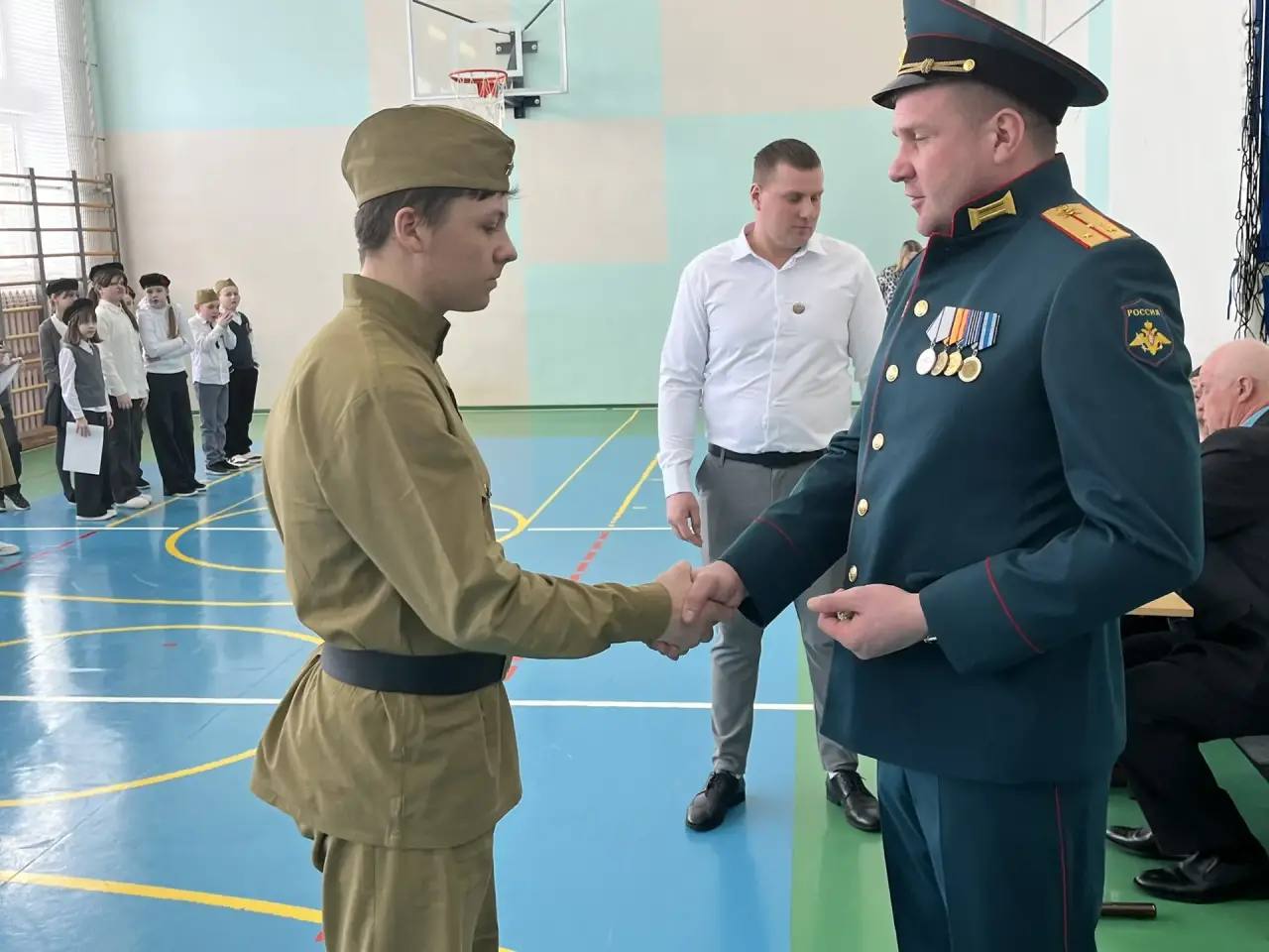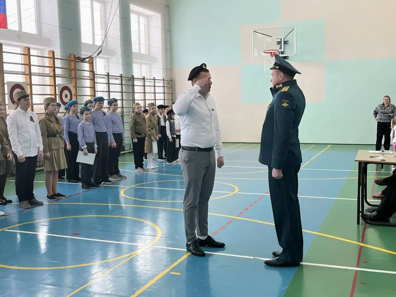 Жюри смотра было представлено директором образовательной организации Александром Шелатуркиным, учителем начальных классов Александрой Сальниковой, и его старшим лейтенантом, участником СВО, Дмитрием Кучиным.