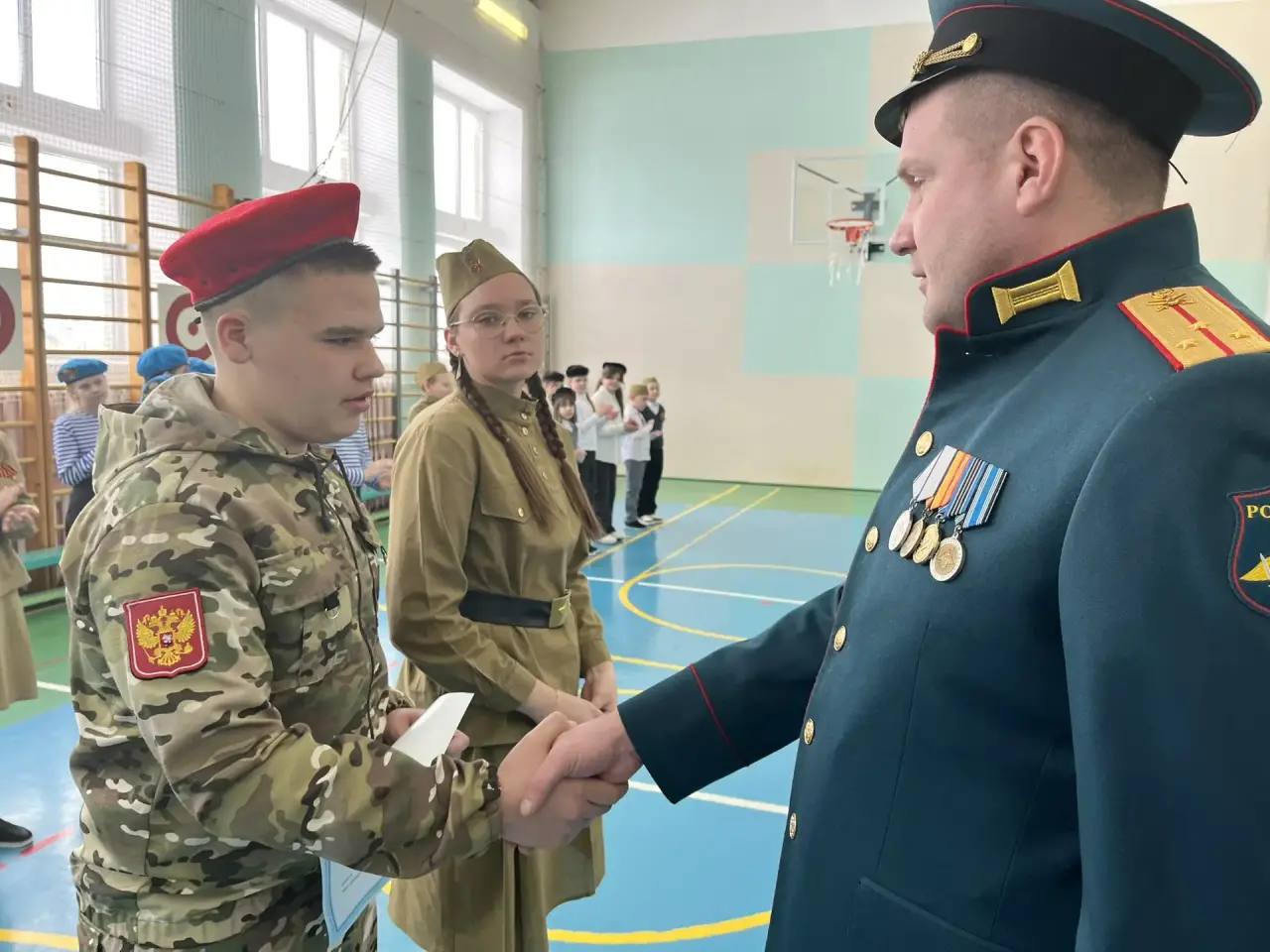 Смотр проходил по традиции в спортивном зале. Все отделения показали высокую дисциплину, отличную подготовку и проявили боевой настрой.