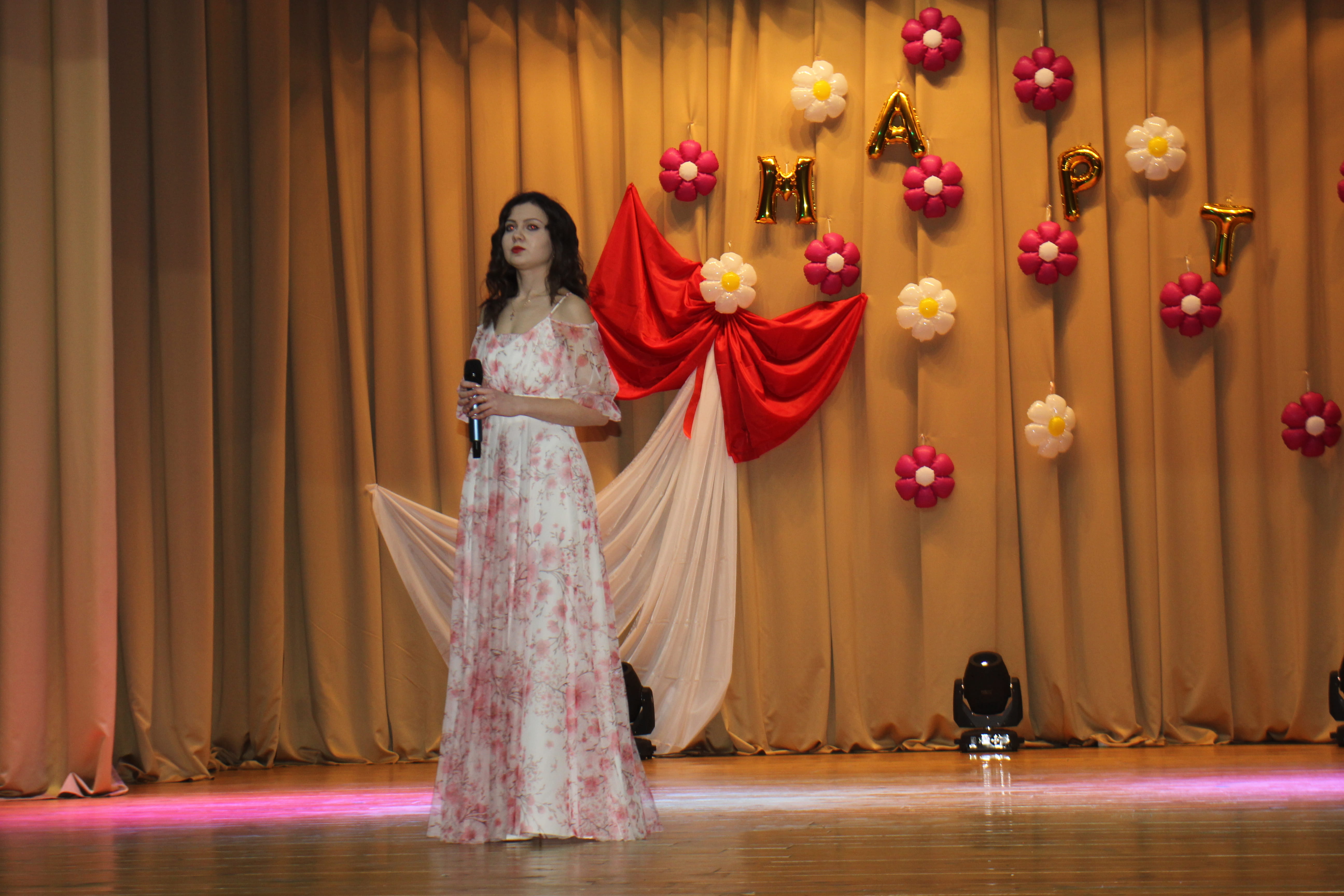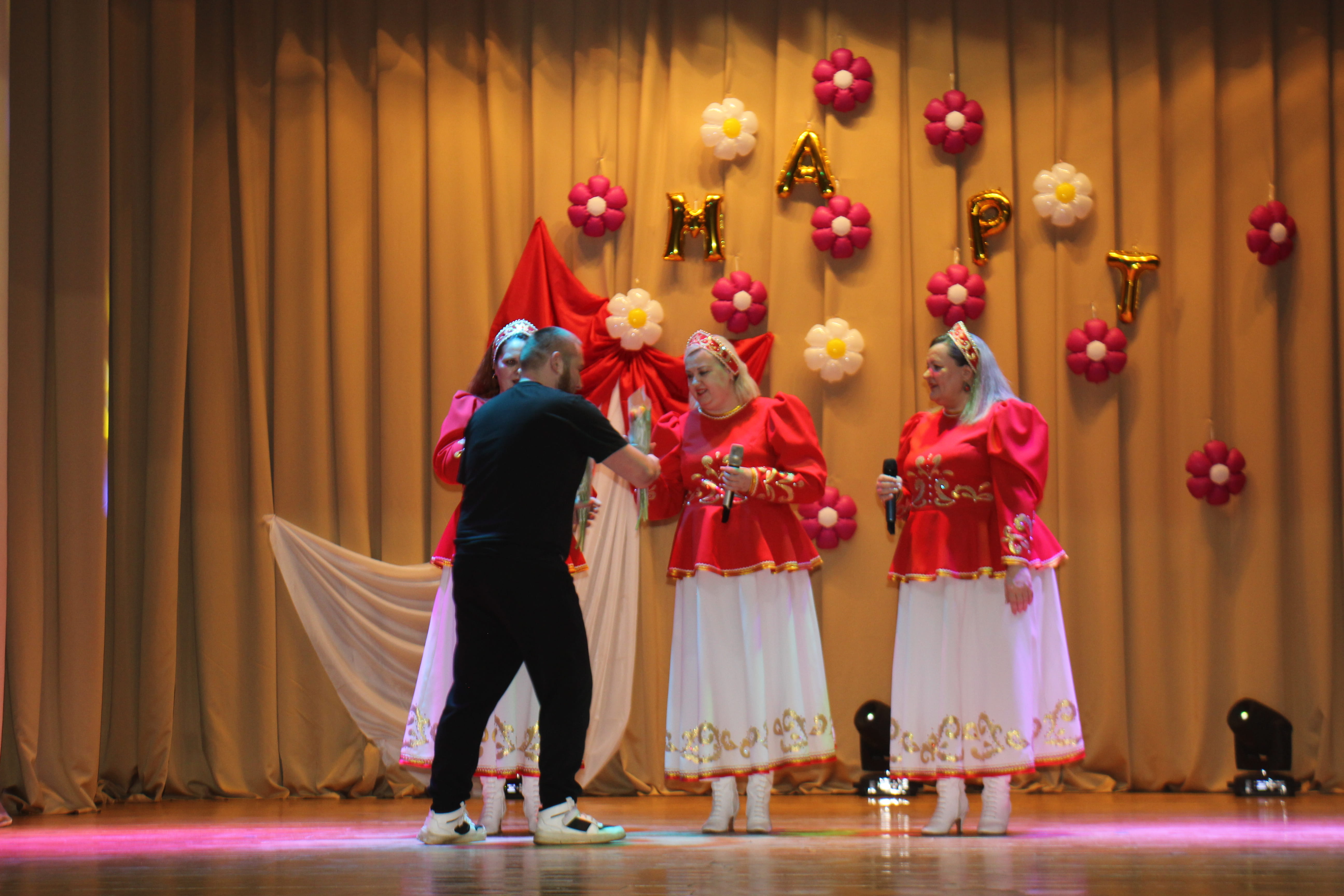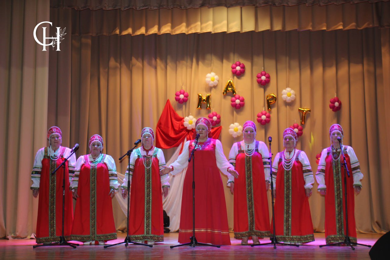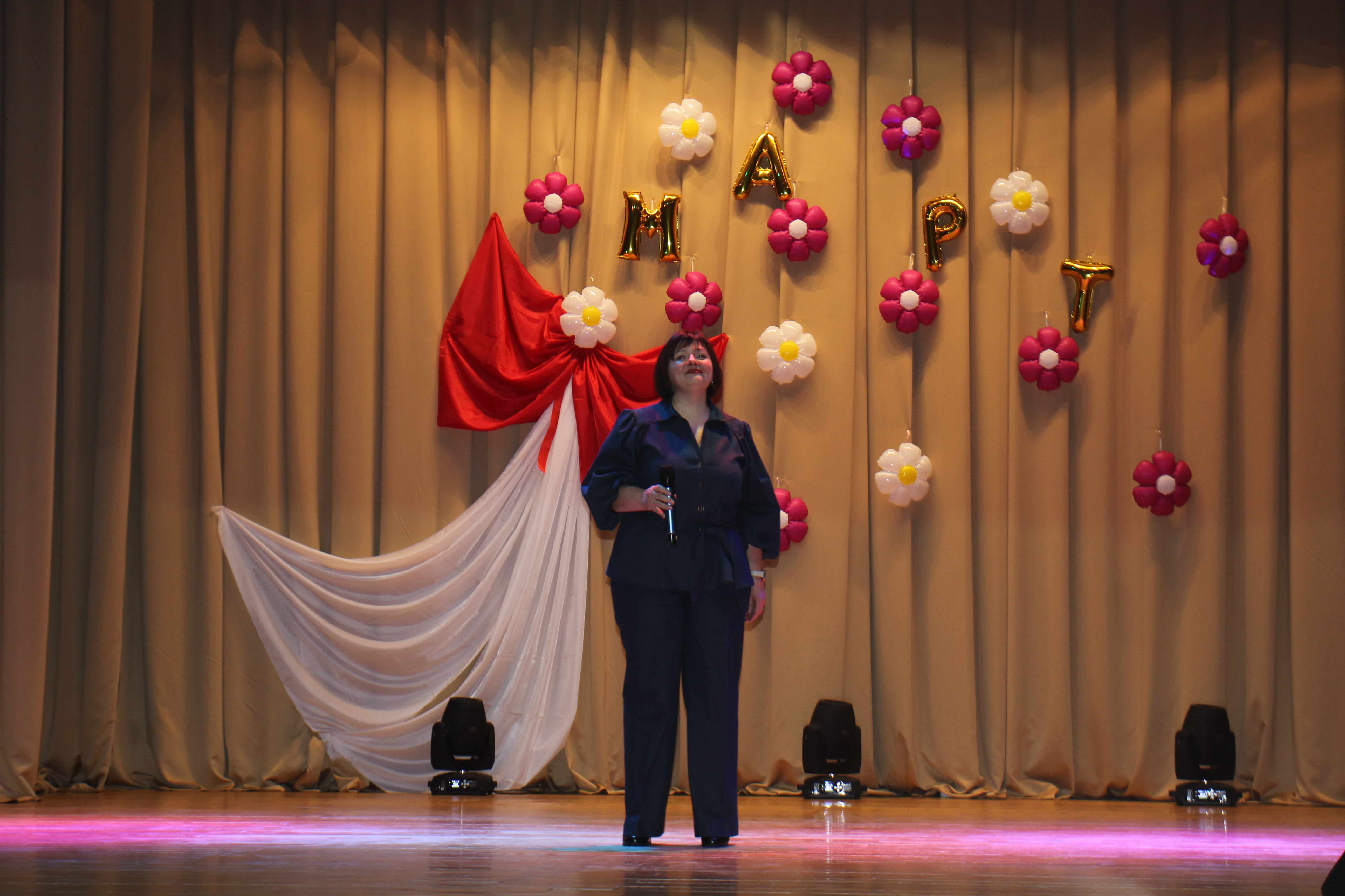 Здесь представительницам прекрасной половины человечества подарили необычный весенний букет из песен, танцев, поздравлений, радости и улыбок.
