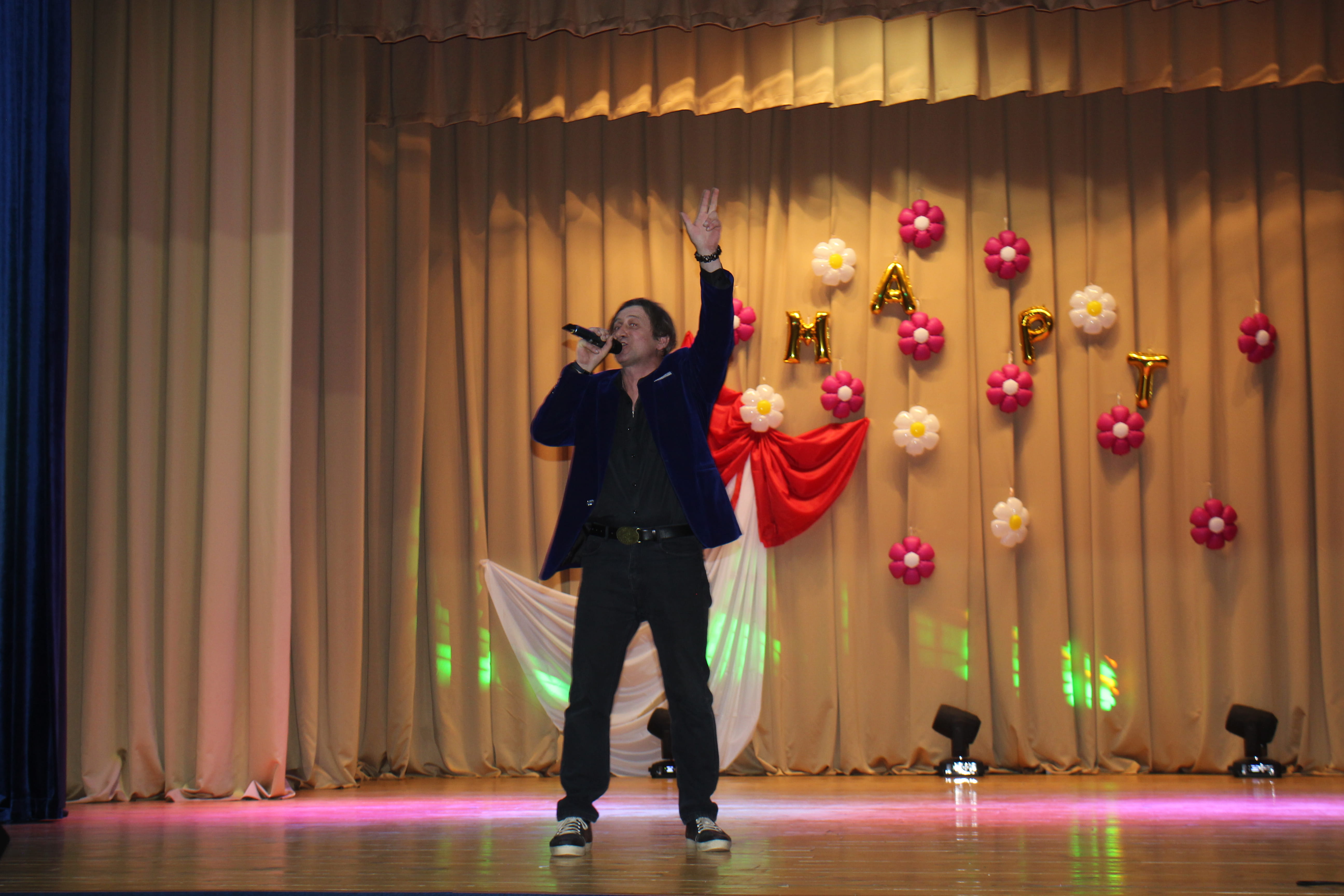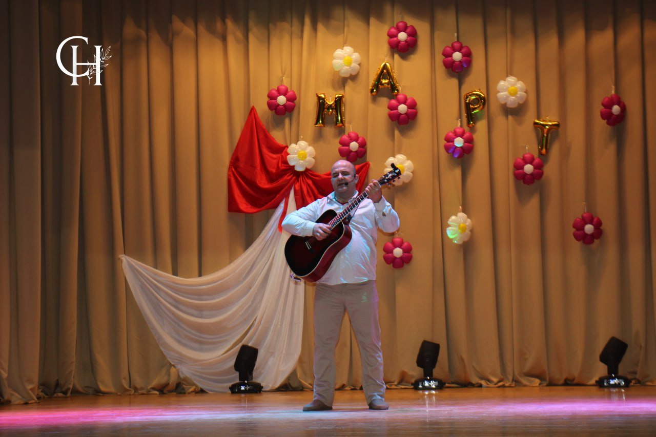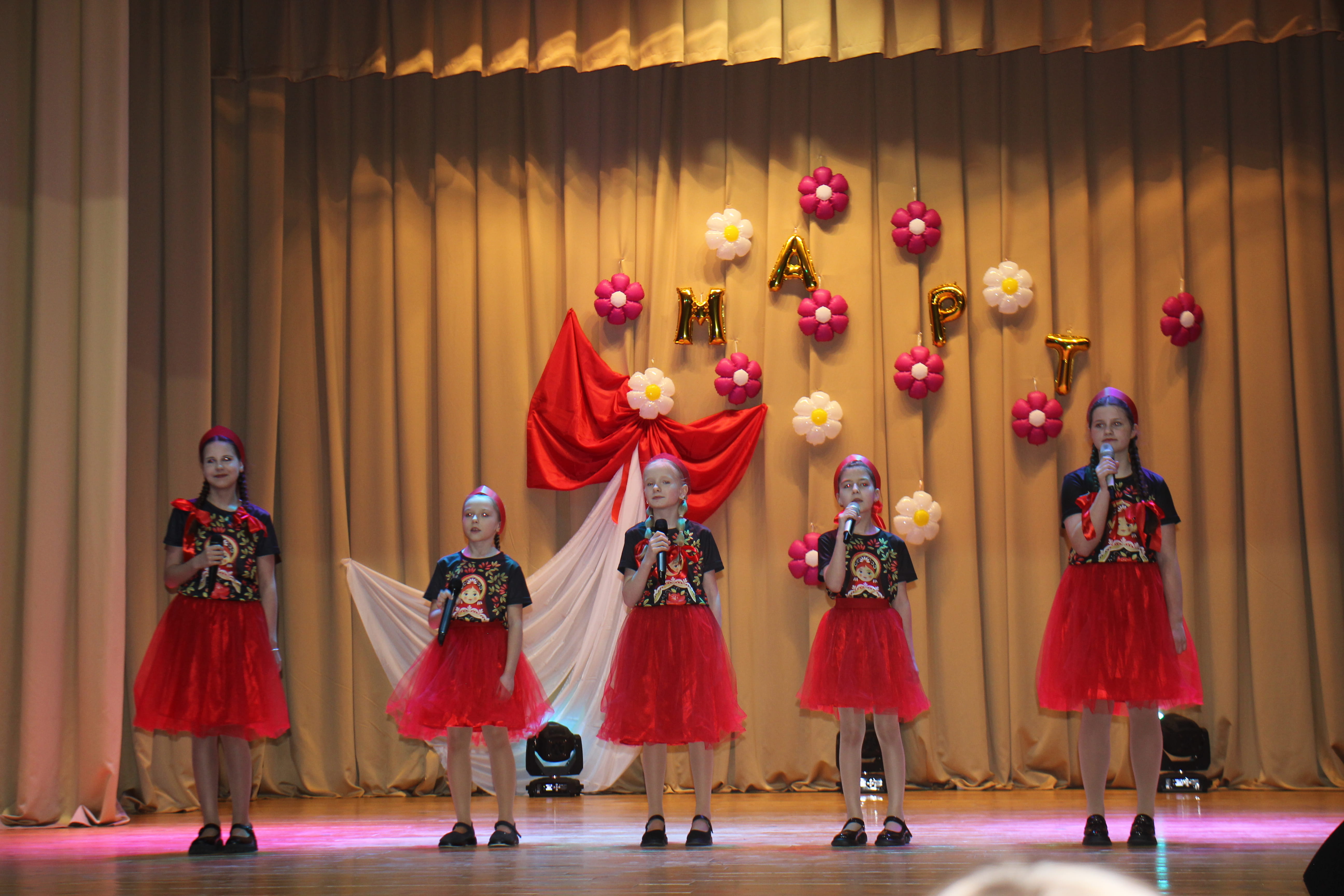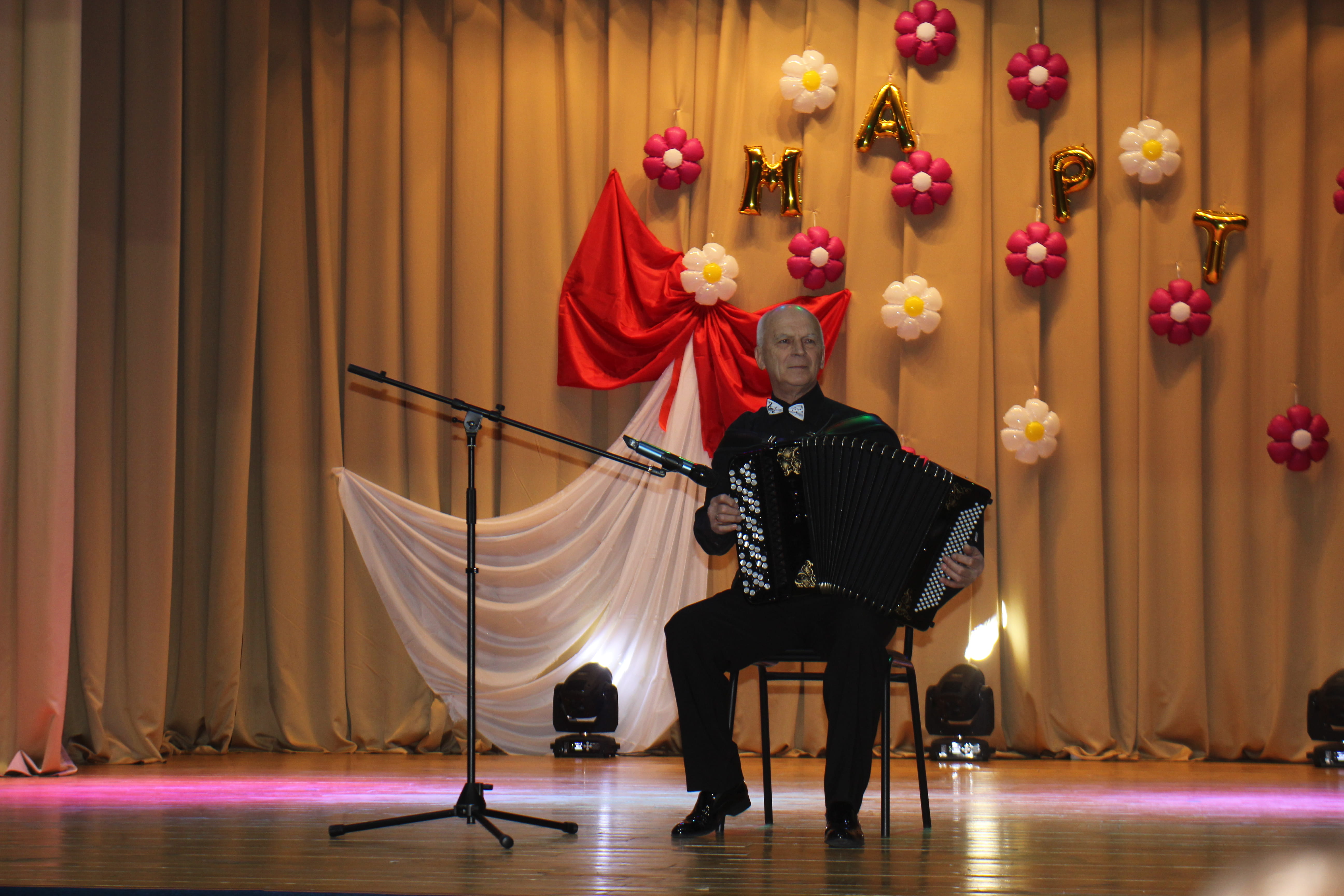 Здесь представительницам прекрасной половины человечества подарили необычный весенний букет из песен, танцев, поздравлений, радости и улыбок.