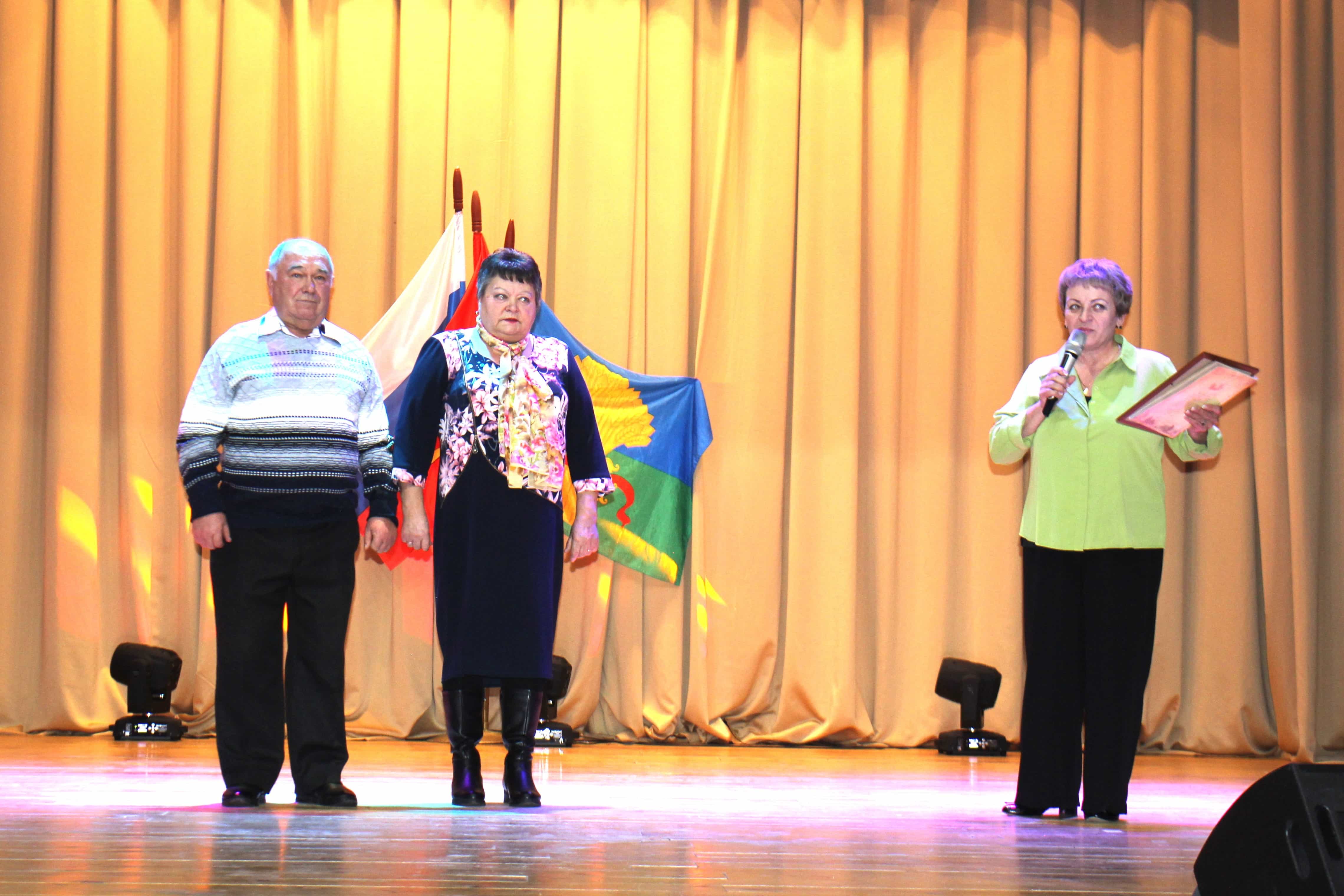 Под рукоплескания земляков на сцену зрительного зала Архангельского центра культуры и досуга были приглашены жители районного центра Николай Алексеевич и Валентина Александровна Карпухины.
