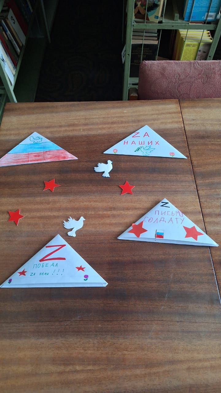 Библиотекарь Галицкой сельской библиотеки Светлана Илюхина подготовила и совместно с учителем четвертого класса Галицкой основной школы Натальей Антошиной провела с юными земляками мероприятие «Письмо солдату». Светлана принесла четвероклассникам заранее подготовленные бланки для писем, в которых дети старательно написали нашим защитникам пожелания здоровья, сил, мужества и скорейшего возвращения к своим родным и близким. Письма свернули в треугольники и украсили рисунками.