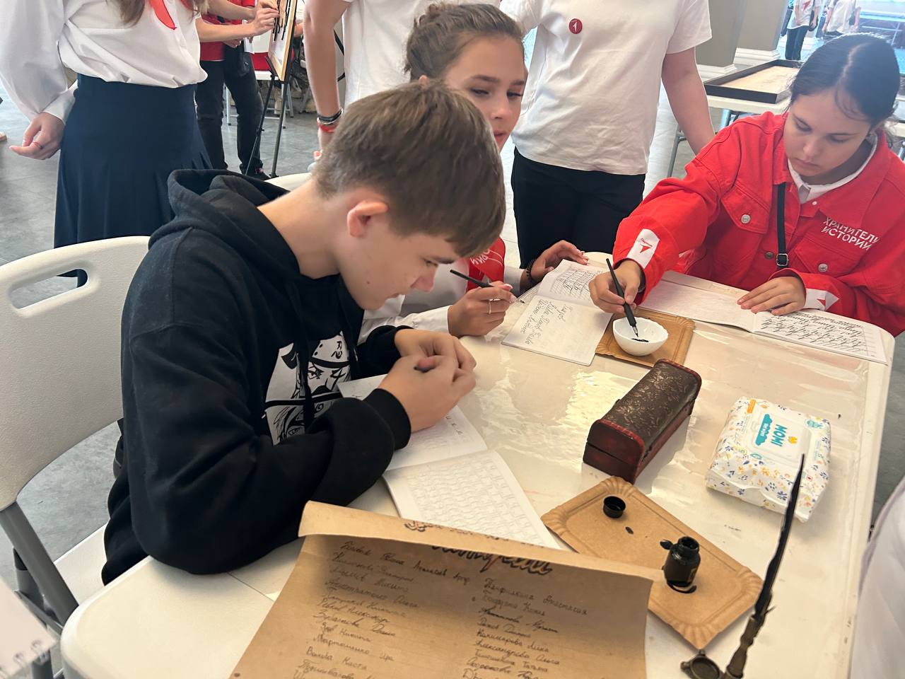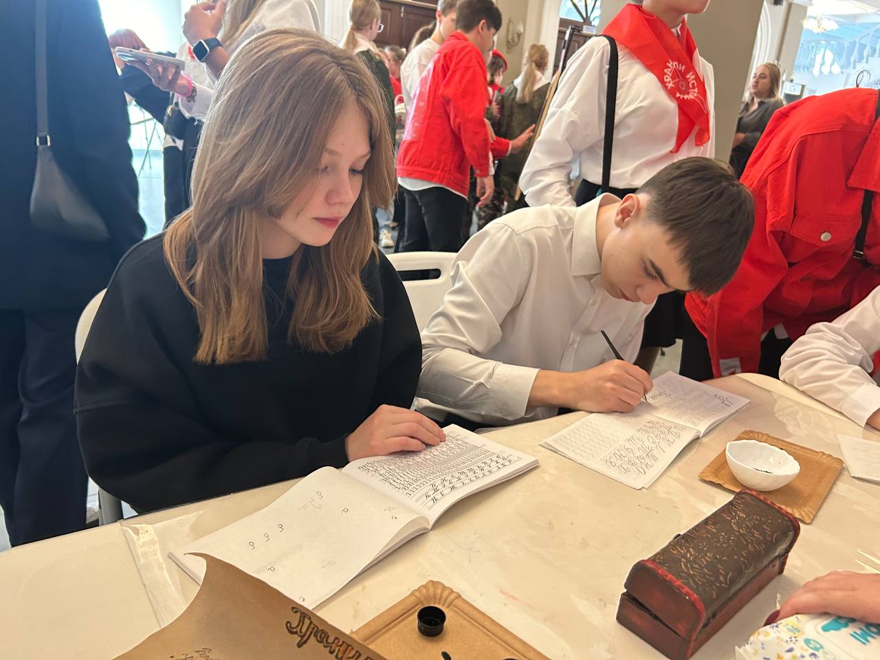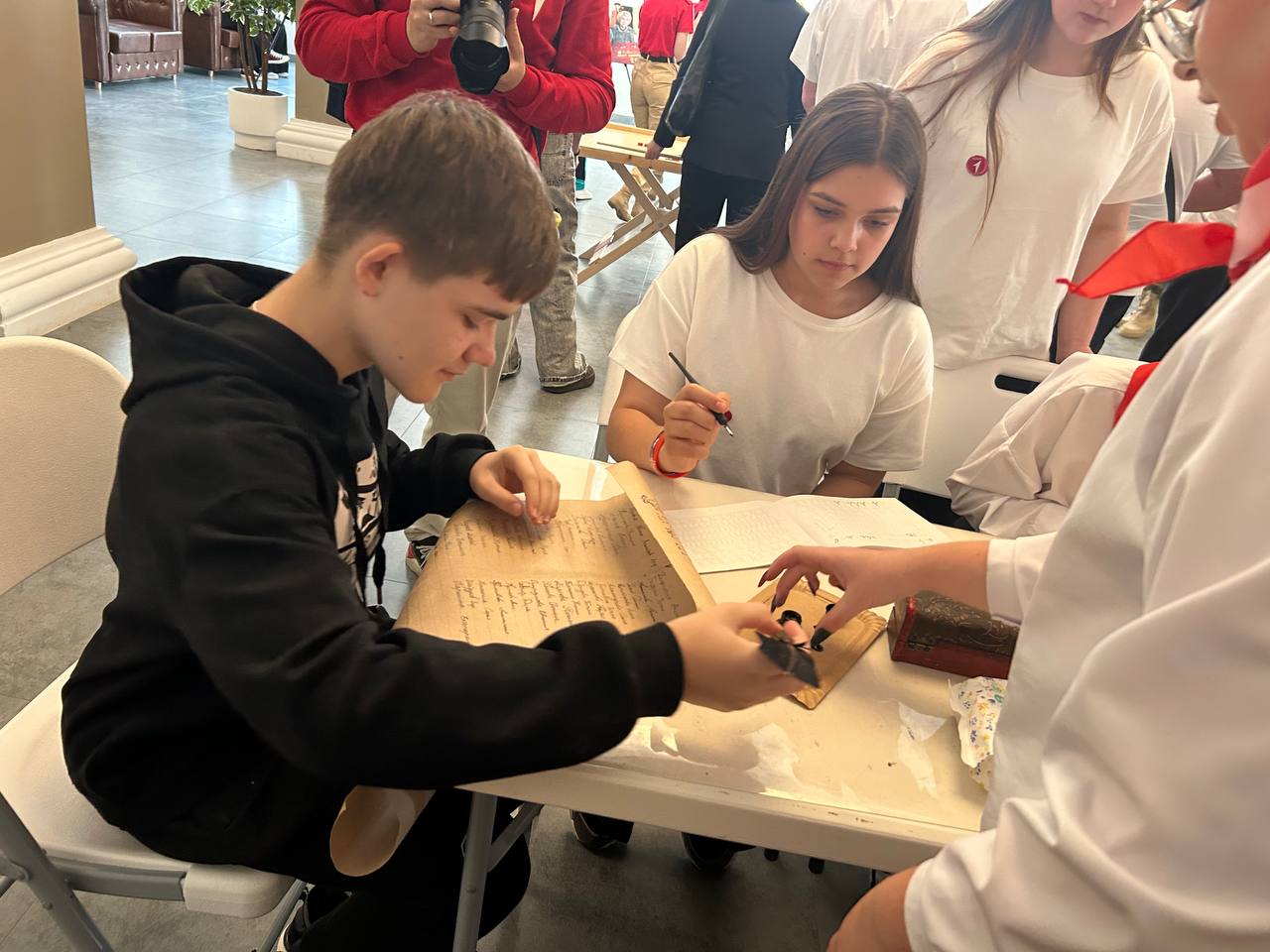 Екатерина Паршина рассказала, что наши ребята успешно справились с заданиями квиза по Великой Отечественной войне. С огромным интересом познакомились с экспонатами выставки музея СВО, с энтузиазмом приняли участие в образовательных интенсивах, в частности, акции «Письмо солдату», мастер-классах. А еще наставник и сами юнармейцы пером и чернилами вписали свои имена в свиток Хранителей истории-2025.