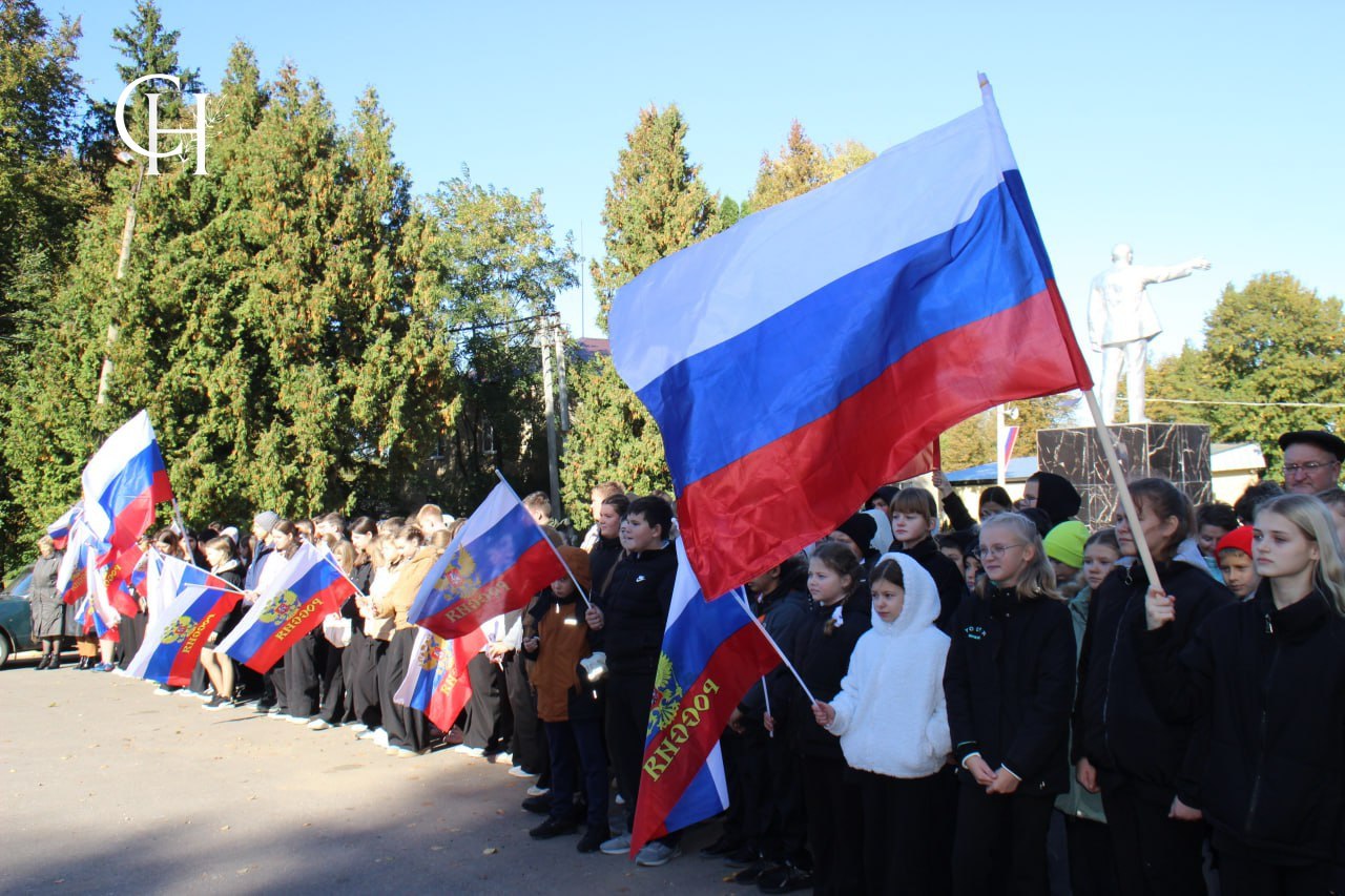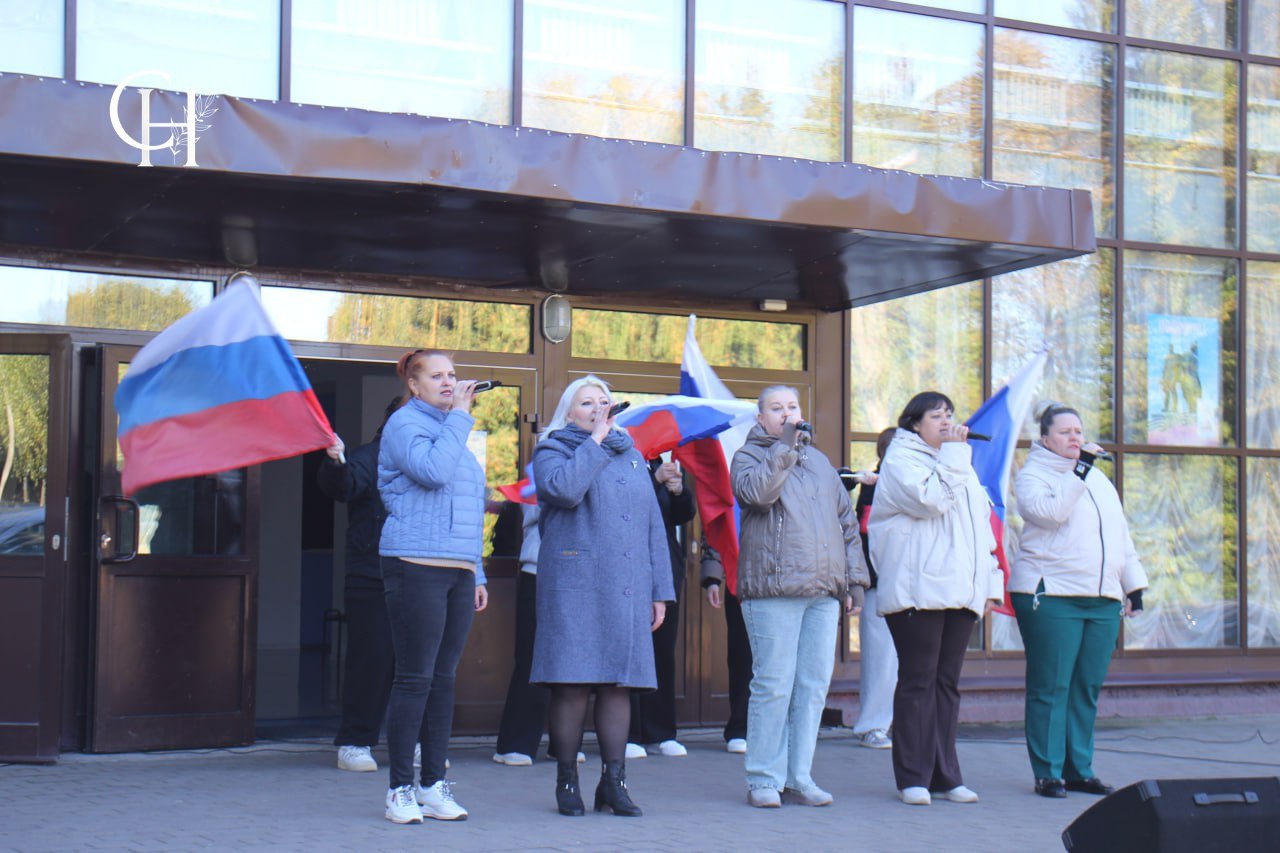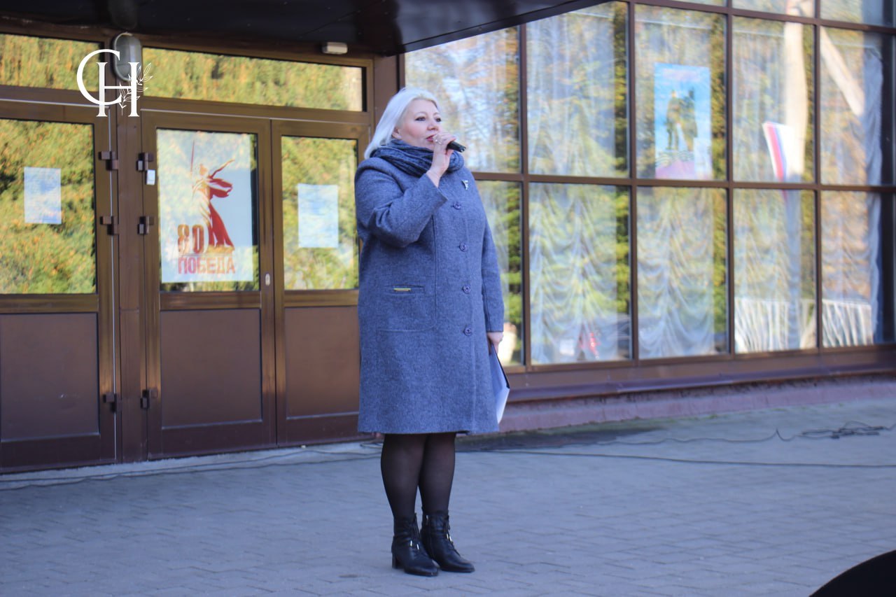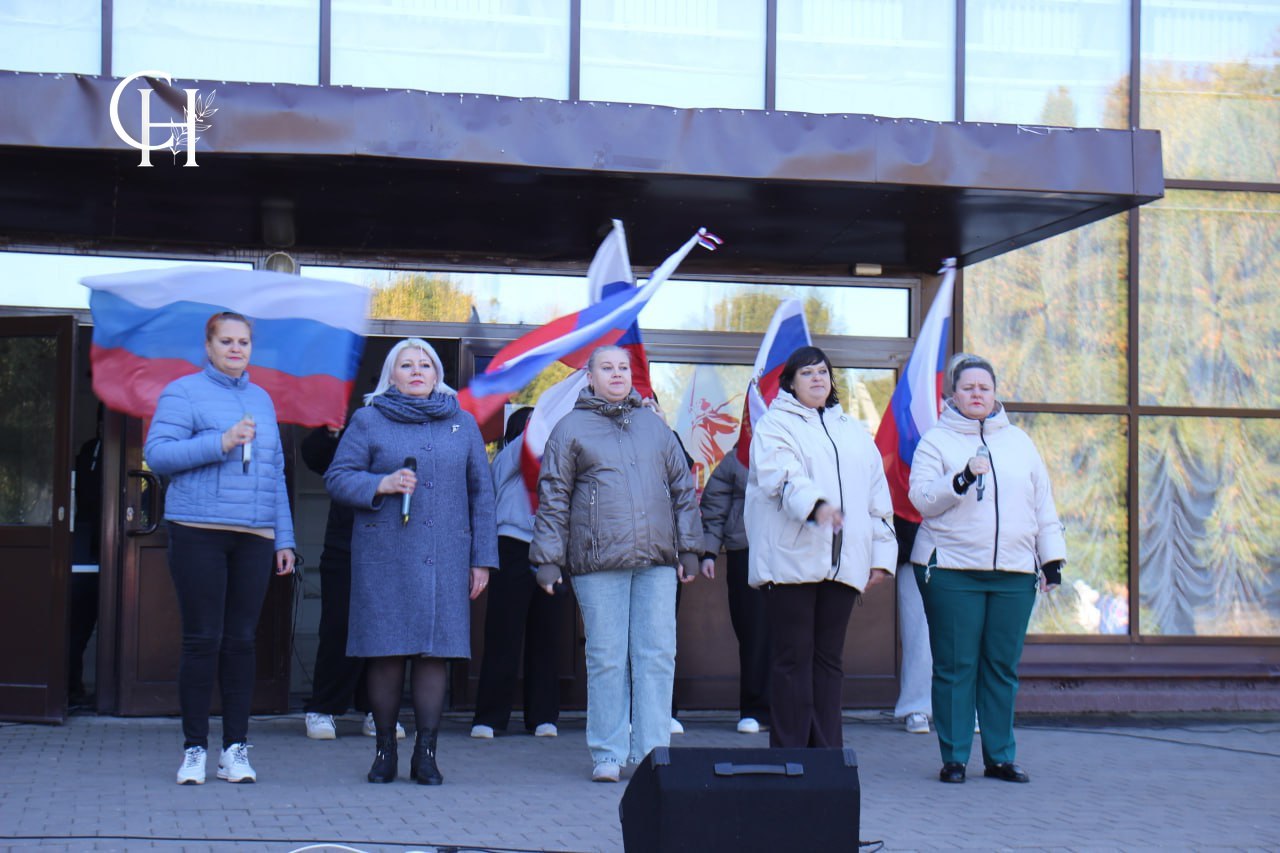 Ведущая митинга Олеся Коновалова пригласила земляков торжественно отметить значимый день в отечественной истории, когда 30 сентября 2022 года, Донецкая и Луганская народные республики, Запорожская и Херсонская области вернулись в состав России.