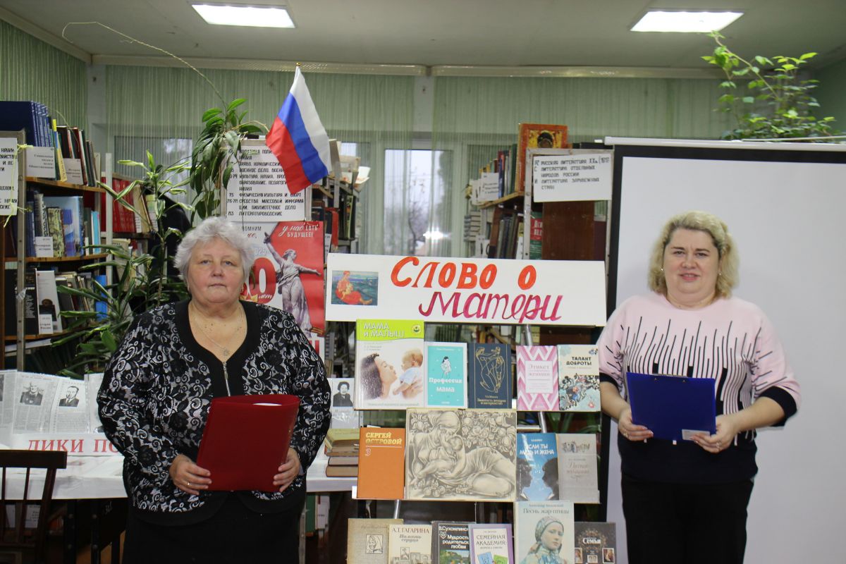 Руководитель «Встречи», а заодно и ведущая праздничного вечера, библиотекарь Елена Французова напомнила об истории праздника, который своими корнями уходит в далекое прошлое, а официальный статус в нашей стране приобрел в 1998 году. Она рассказала, как звучит слово «мама» на разных языках мира, познакомила с книжной выставкой «Слово о матери» и предложила участникам мероприятия тематический конкурс-разминку.