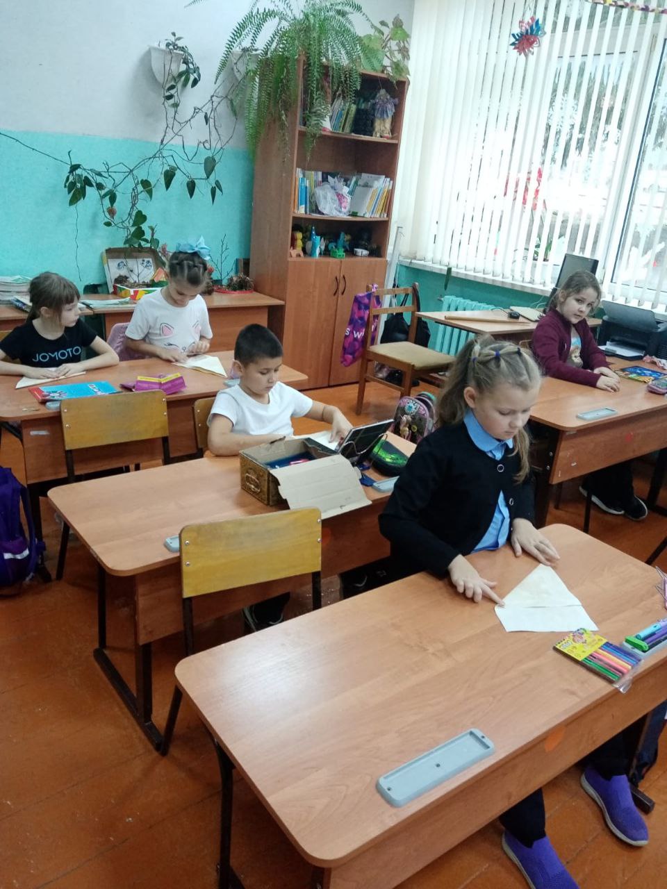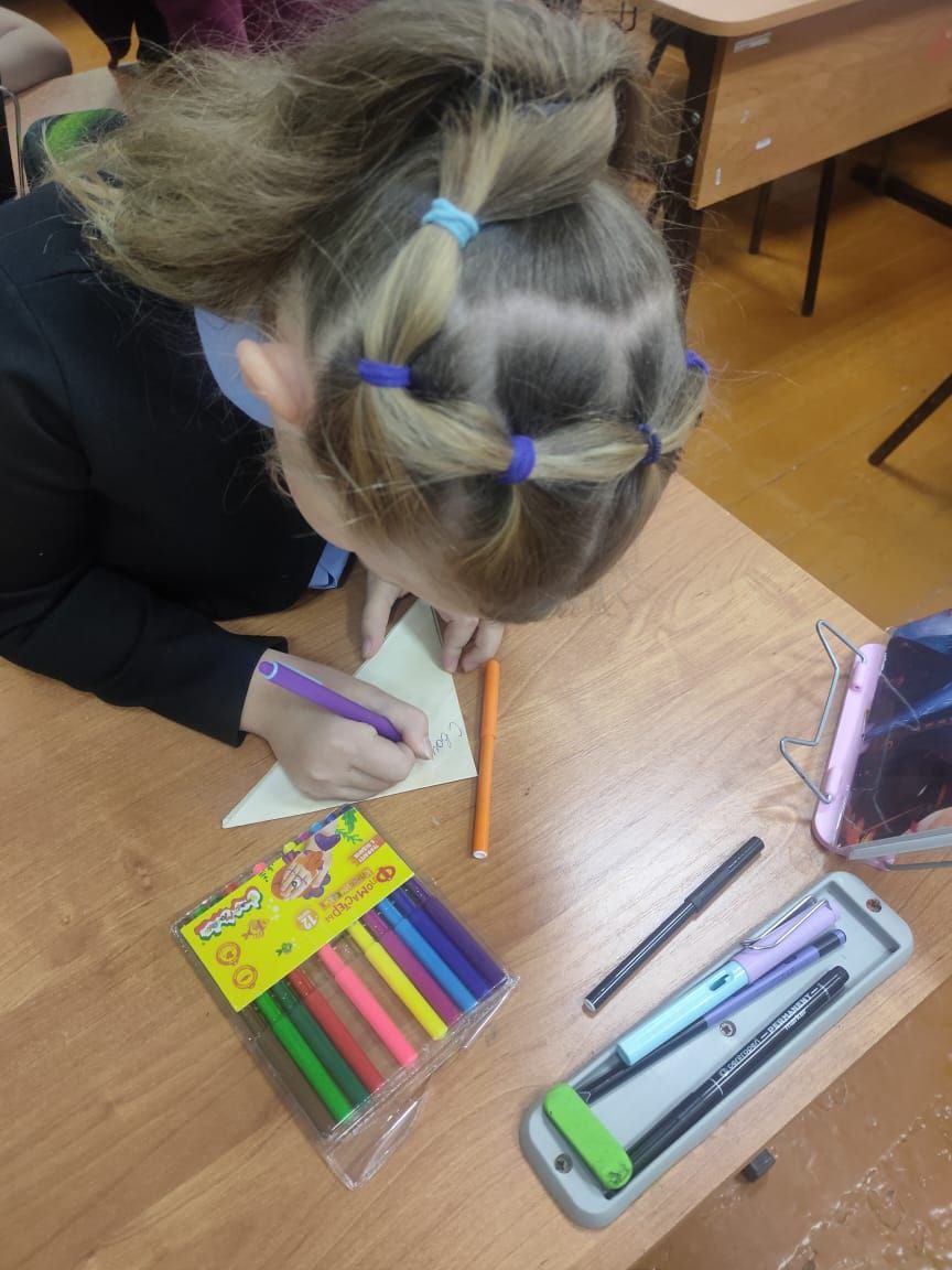 Она отметила, что и сегодня с помощью писем нашим бойцам в зону спецоперации россияне, в том числе дети, словами поддержки и добрых пожеланий передают частичку сердечного тепла и привет из дома. И, раздав школьникам листочки бумаги, предложила им своими руками сложить солдатские треугольники. При помощи Анжелики Новиковой и классного руководителя Натальи Неделяевой, ребята не только отлично справились с задачей, но у украсили аккуратные треугольники словами «Своих не бросаем!», изобразили георгиевскую ленту, а кто-то сердечки, и подписали.